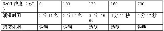 不同NaOH溶液的潤濕性能:(試驗條件:30℃、上升2cm測試時間(寬度)×2cm(高)棉條。)